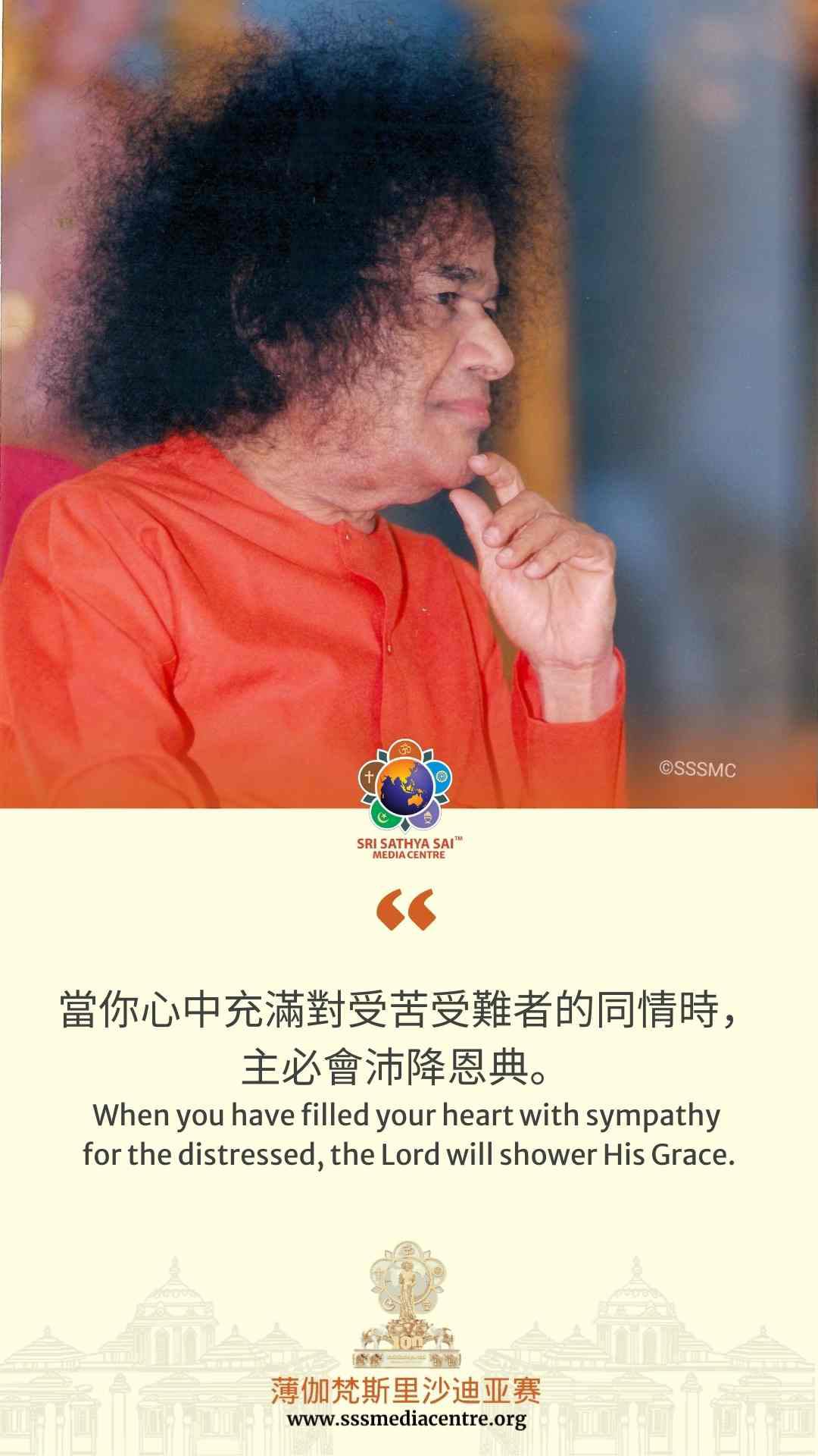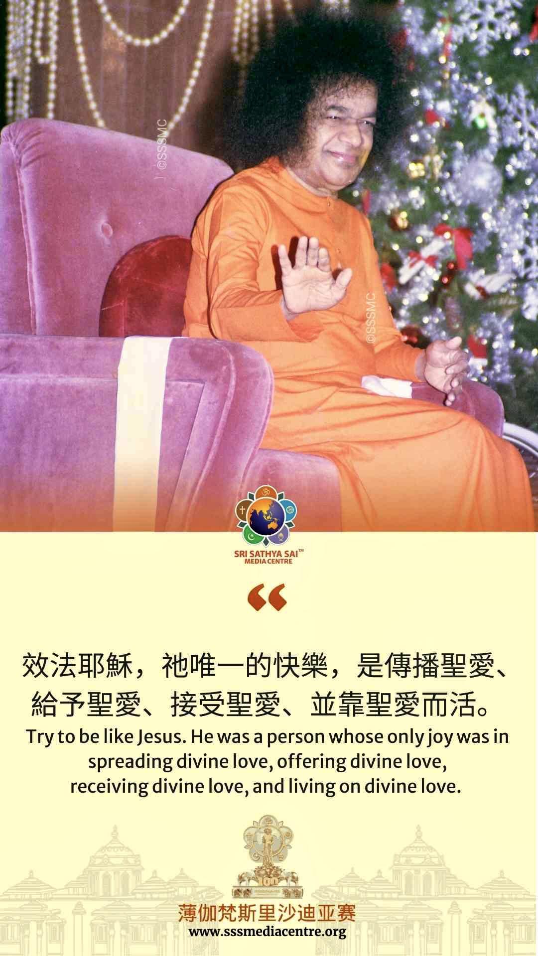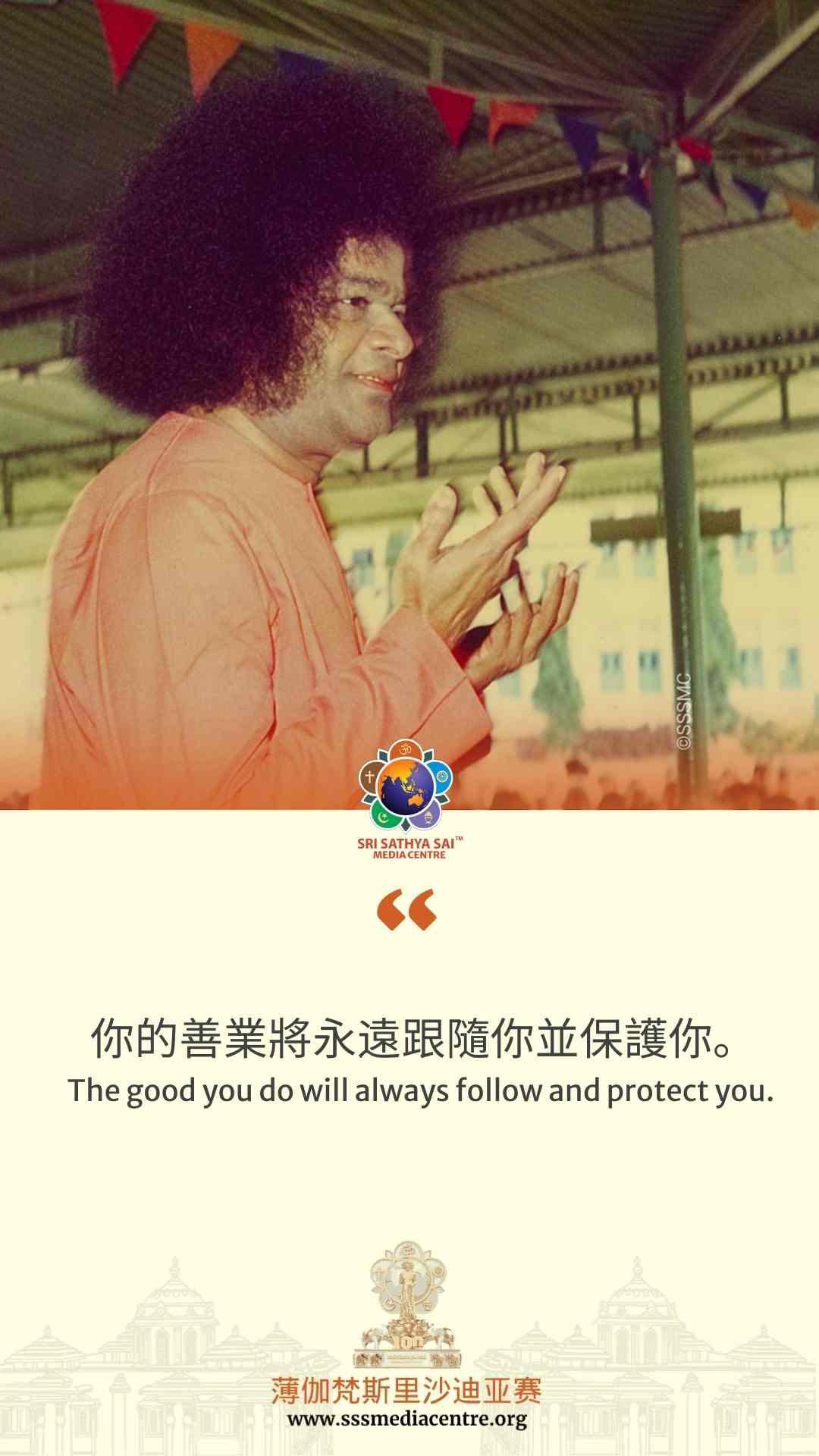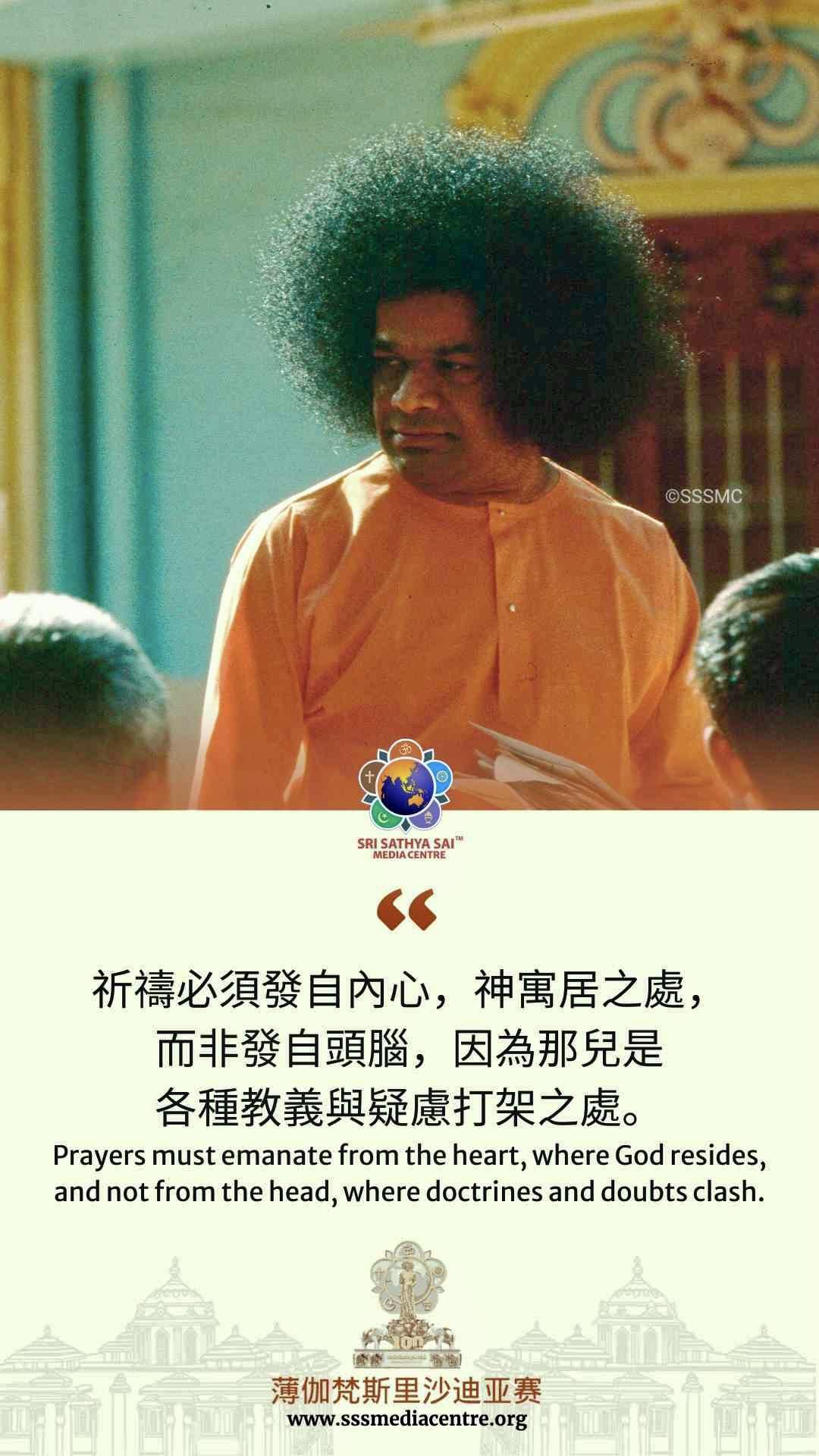賽巴巴指引你將阿特曼(Atma, 真我)視為你最親近的親人,比你的家人、血親和最親愛的後代更親。如果你做到這一點,你就永遠不會偏離正道,唯有正道才能維持這種親情。對家庭的依戀甚至會阻礙你履行正當的職責,而對神的依戀卻會使人以奉獻之心履行職責,從而確保喜悅和成功。它能激發人,任何其他方式都比不上它。在履行職責的過程中,它賦予人至高的智慧。因此奉勸諸位:不要抱著明心見性的希望而入世;意識到自己有神性之後再入世,因為那時你會以新的眼光看這個世界,你的生命本身也會成為一場長久的愛的節慶。有很多人將他們的學問和聰明,甚至是吠陀學識,用於枯燥的辯論和競爭。他們沉迷於微不足道的勝利。他們宣稱社會是贏得此類勝利的競技場。但是,賽巴巴呼籲你們去追求並鞏固另一種社會,那兒不容有這種瑣屑慾望。